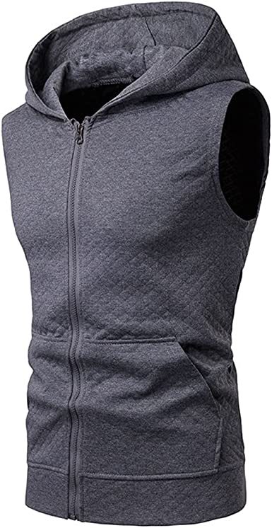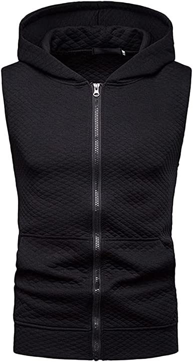 Men's Casual Hoodie Tank Tops Sleeveless Shirts Gym Workout with Pockets Gym Muscle Sleeveless T-Shirts