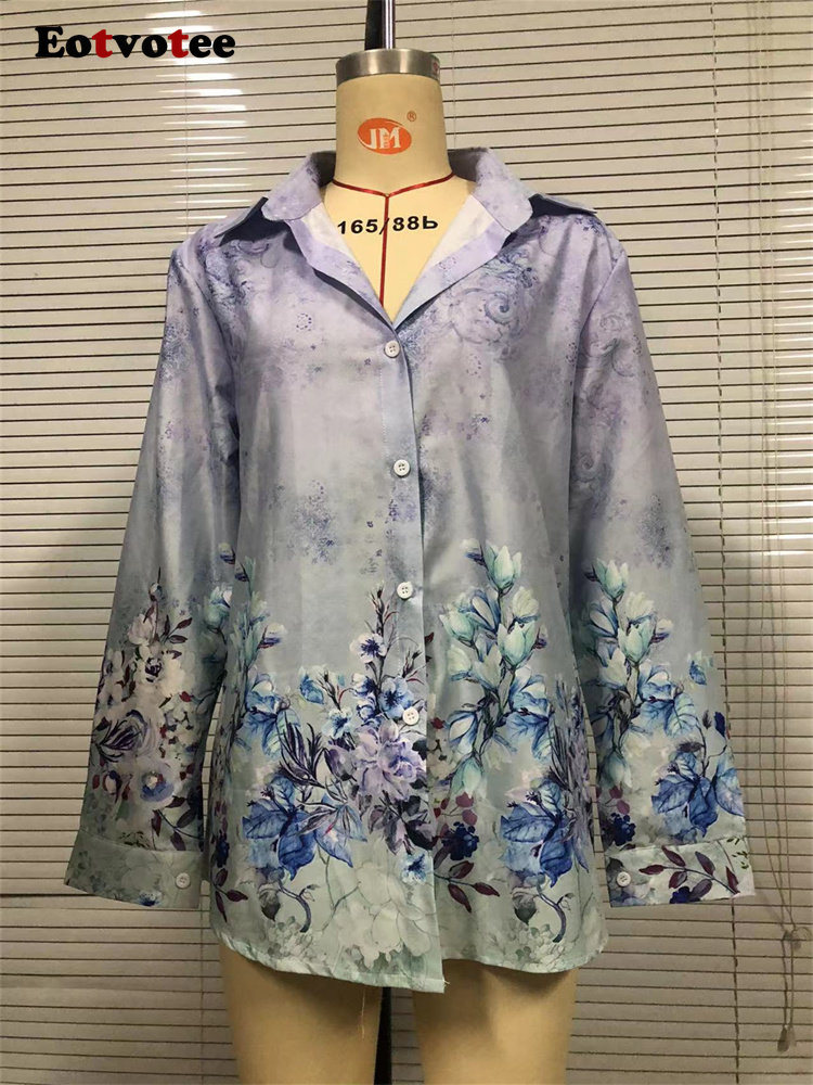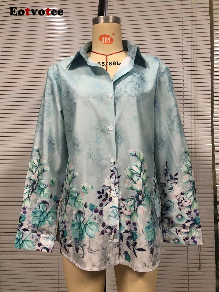Print Elegant Shirts For Women Spring 2023 New Vintage Turn Down Collar Long Sleeve Blouses Office Ladies Casual Top